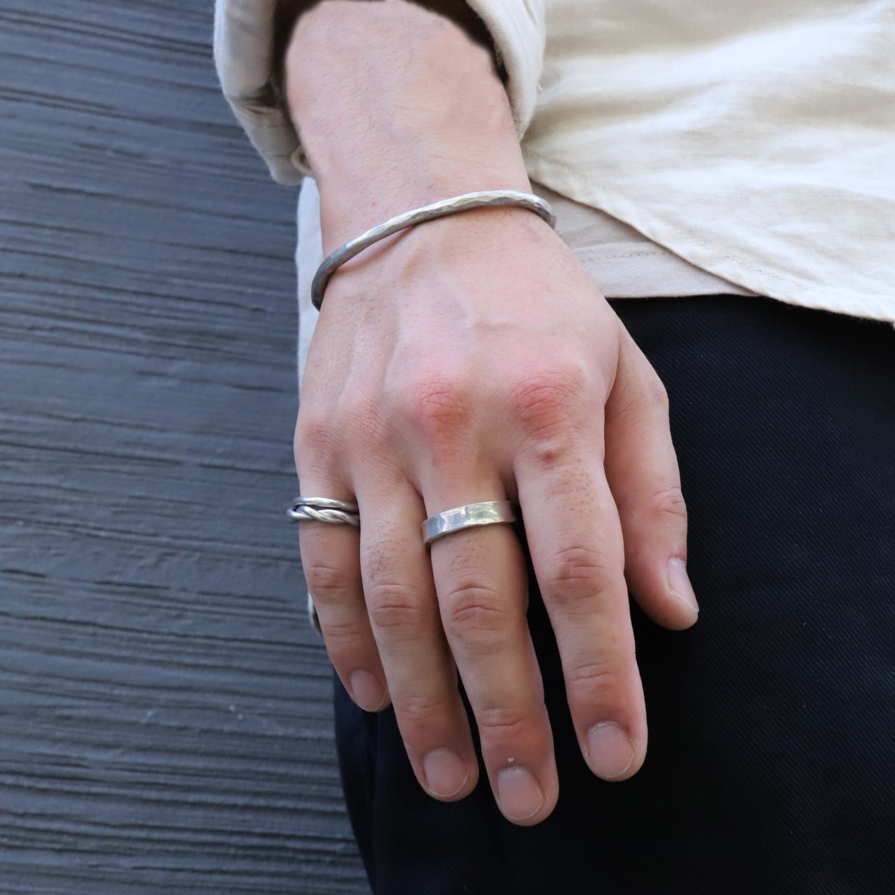 ◆錫 (スズ) × silver リング【Line Hammered Tin Ring 】