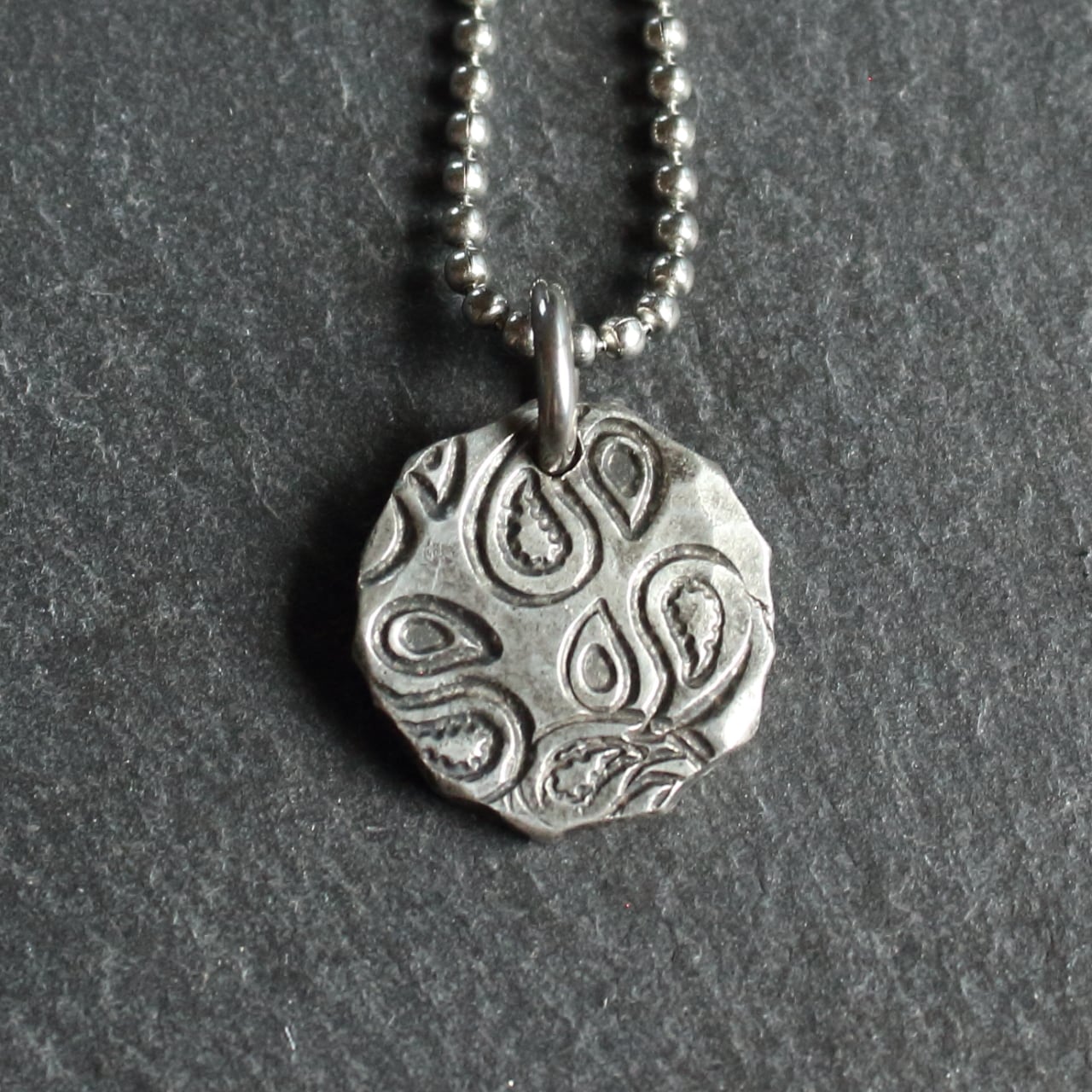 ◆錫 (スズ) × silver ネックレス【Stamp Tin Necklace #Paisley