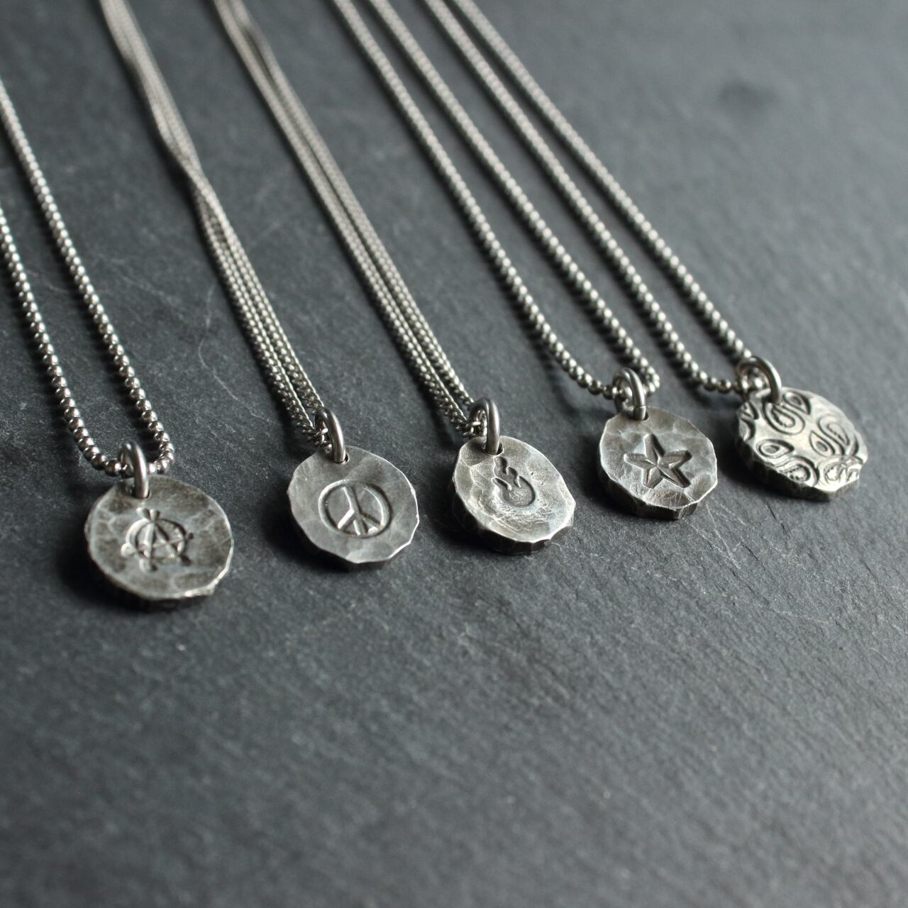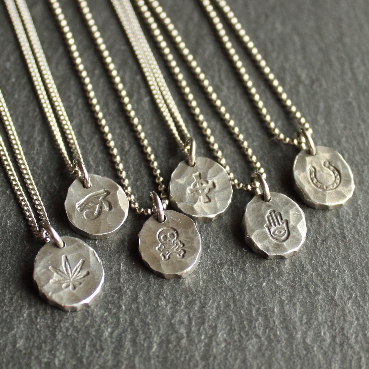 ◆錫 (スズ) × silver ネックレス【Stamp Tin Necklace #Hemp