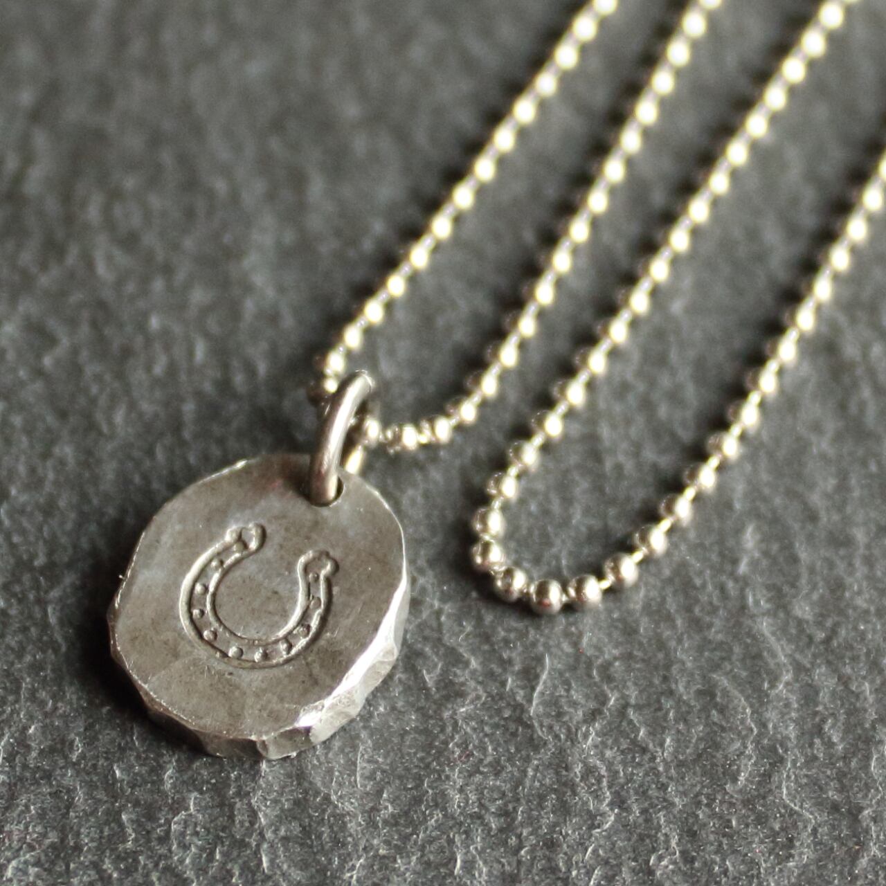 ◆錫 (スズ) × silver ネックレス【Stamp Tin Necklace #Horseshoe