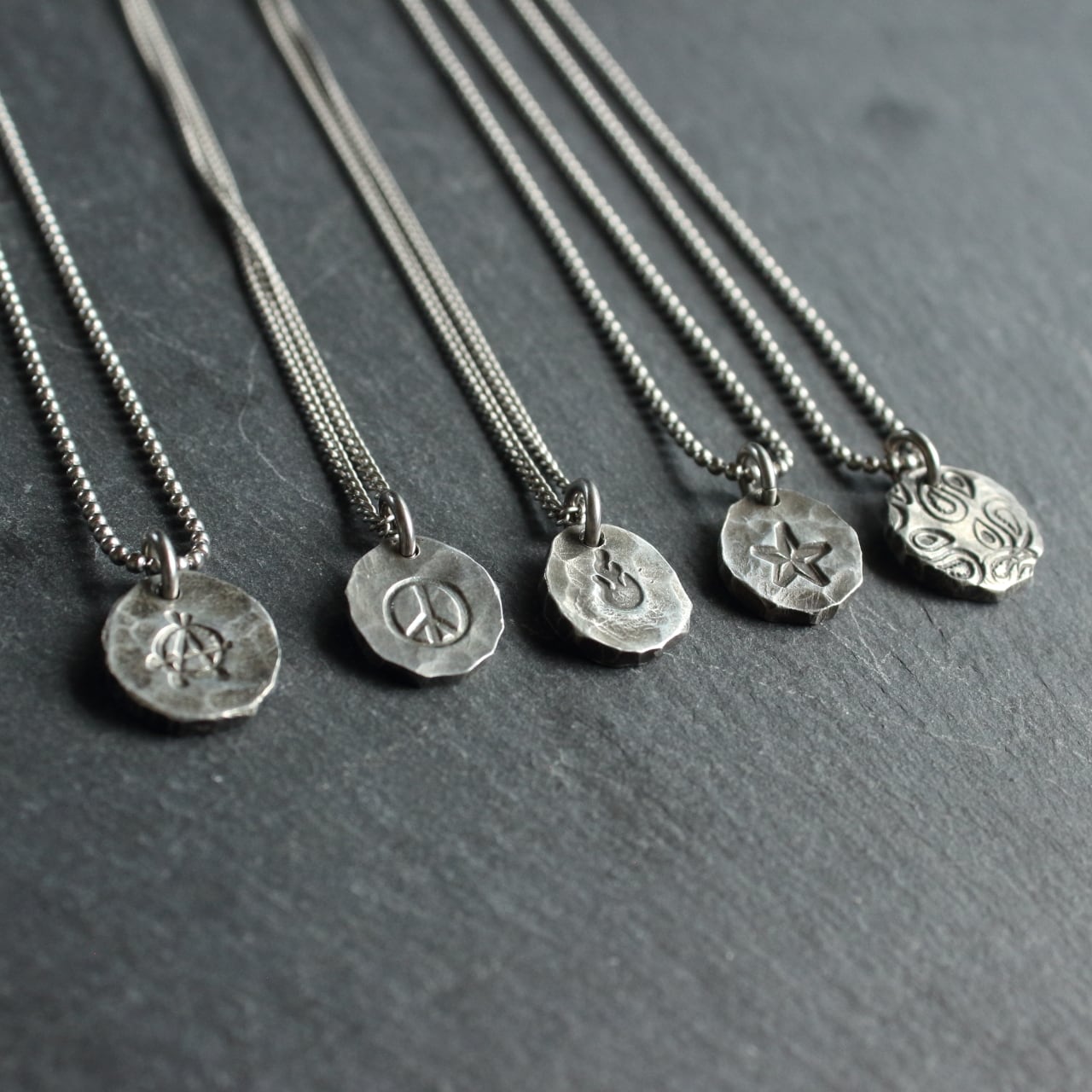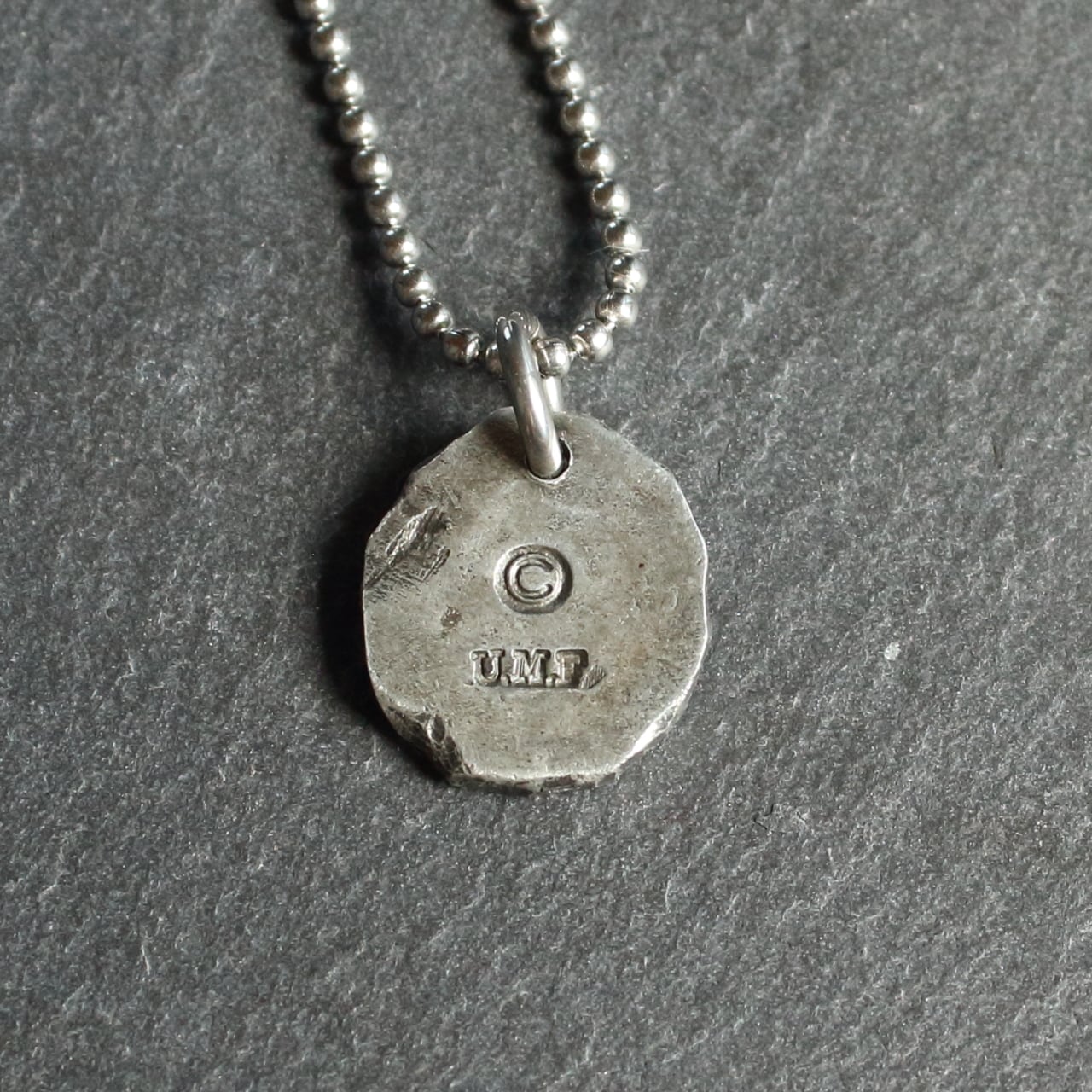 一本の錫線から叩きプレート状にしたネックレス