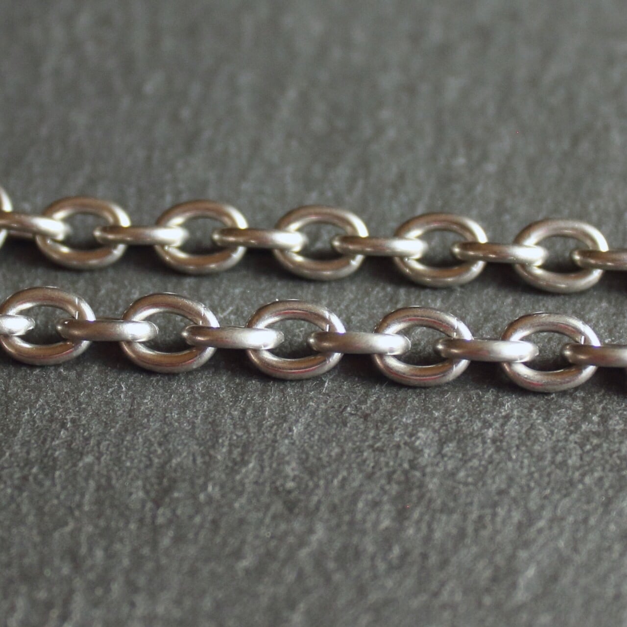 光沢を落としたマット加工を施しているのでメッキのかかったチェーンとは違う落ち着いた輝きです。