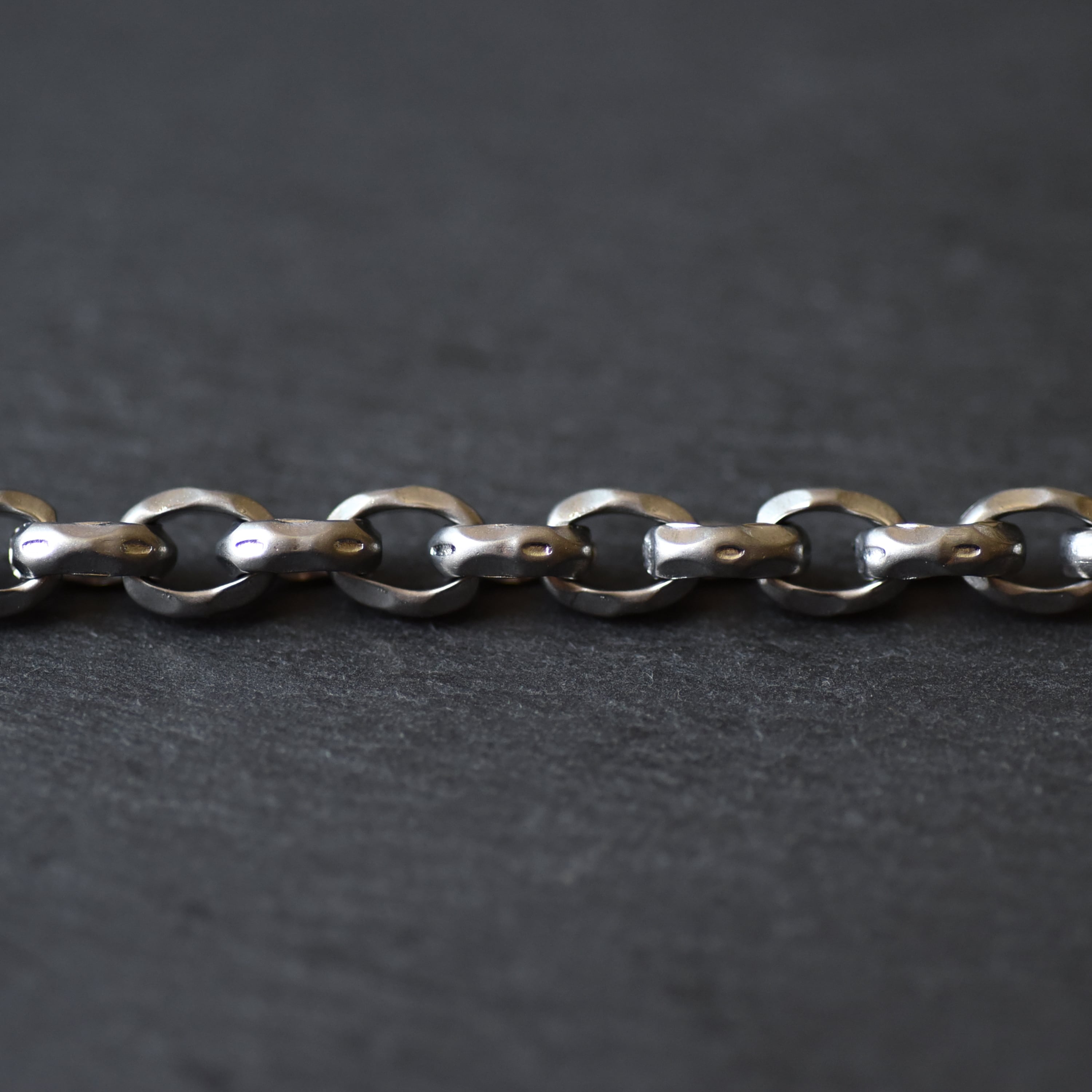光沢を落としたマット加工を施しているのでメッキのかかったチェーンとは違う落ち着いた輝きです。